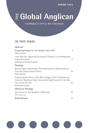Read the full content listing for The Global Anglican Vol 136/1. The Global Anglican is an international journal of theology for the Anglican church. This listing is for a single issue. You can also subscribe to the journal here.